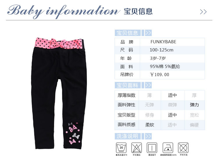 女童蝴蝶结长裤纯棉淑女裤子运动休闲裤大量现货供应SS14136
