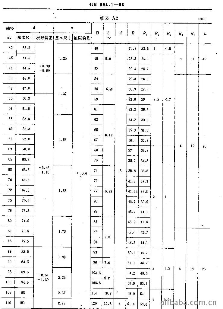 规格:D3~D800(D200以上请参考重型轴用挡圈标准JB-ZQ 4344)