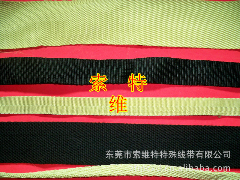 索维特牌芳纶织带是以kevlar-芳纶纤维编织。芳纶全称为"聚对苯二甲酰对苯二胺",英文为Aramid fiber(杜邦公司的商品名为Kevlar),是一种新型高科技合成纤维,具有超高强度、高模量和耐高温、耐酸耐碱、重量轻等优良性能,其强度是钢丝的5~6倍,模量为钢丝或玻璃纤维的2~3倍,韧性是钢丝的2倍,而重量仅为钢丝的1/5左右,在560度的温度下,不分解,不融化。它具有良好的绝缘性和抗老化性能,具有很长的生命周期。芳纶的发现,被认为是材料界一个非常重要的历史进程。