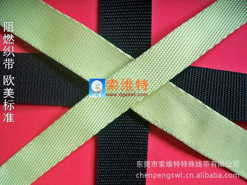 索维特阻燃织带已系列化:有国家阻燃标准,美国阻燃标准,欧洲阻燃标准。材质分为三类:1、杜邦kevlar阻燃织带,2、kanecaron阻燃织带,3、涤纶阻燃织带。