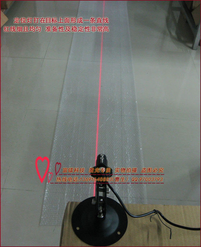 质量保证:本公司销售的所有商品均为我工厂自主研发、生产,拥有绝对的品质及价格优势,批零兼营,量大从优;【深圳市富镭科技有限公司】是专业生产红外线定位灯、激光 镭射定位产品的生产厂家,详情请咨询客服,热线电话:13691640883曹先生。