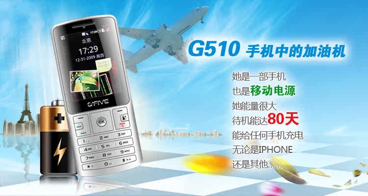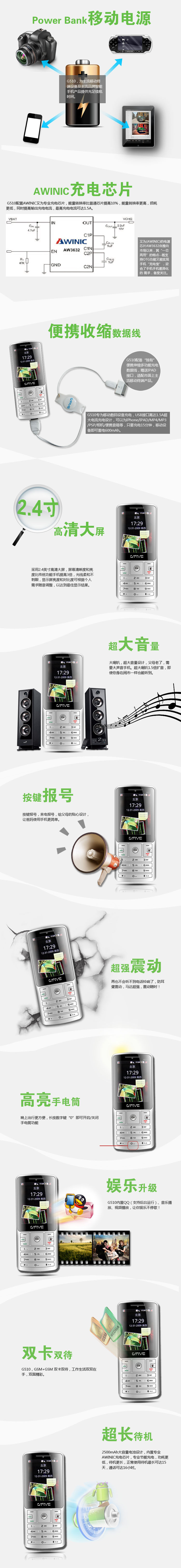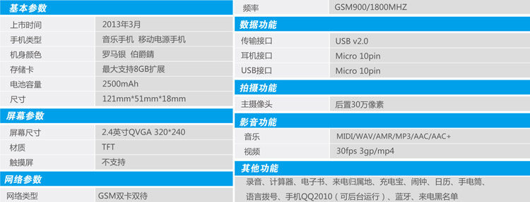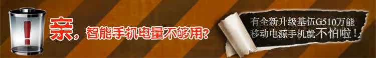 备注:G510 2013版万能移动电源手机不支持触屏,标配不带原装耳机,耳机接口类型为10 Pin micro USB接口