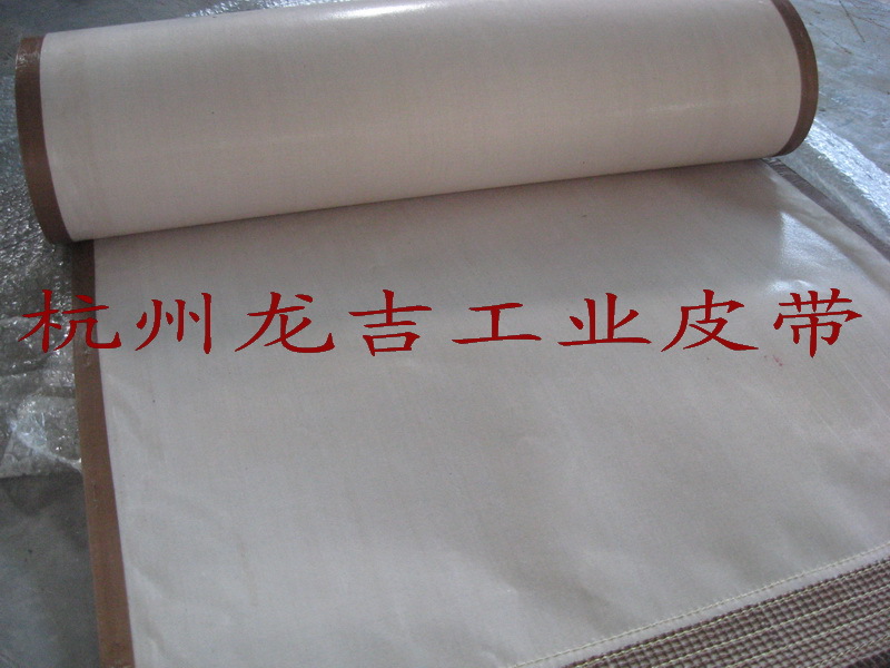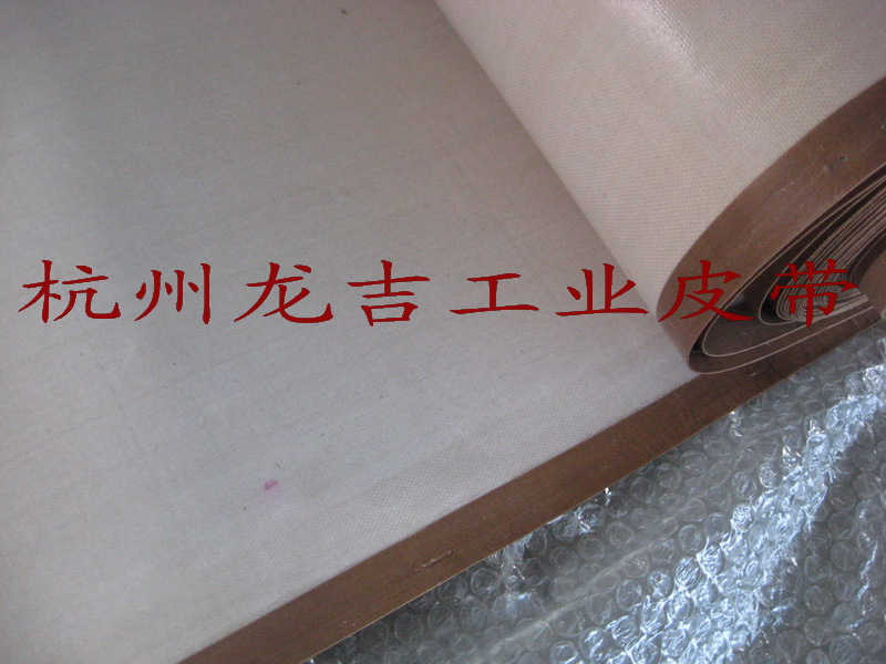 特氟龙网格输送带使用案例特氟龙皮带具有耐高温性、表机摩擦系数小,绝缘性好的特性,广泛应用于粘合机、服装印染等机械上。