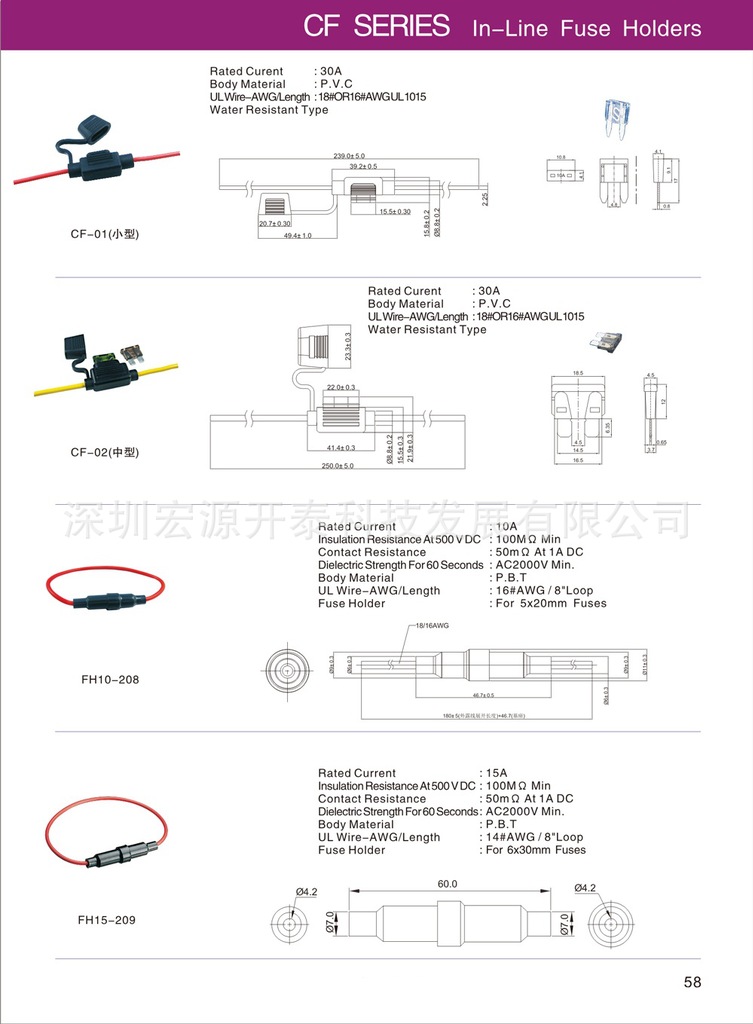 供应宏源开泰 汽车保险丝座 单插 双插 中型 小型插片式