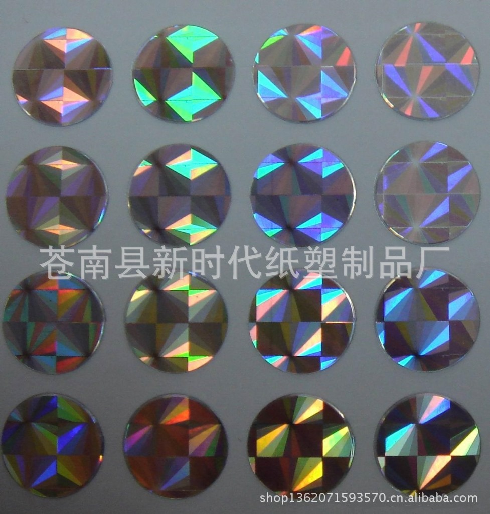 激光防伪标签是利用激光彩色全息图制版技术和模压复制技术完成的防伪标签,可实现的制版技术有:点阵动态光芒、一次性专用激光膜、3D光学微缩背景、多彩光学随机干涉、中英文铀缩文字等。