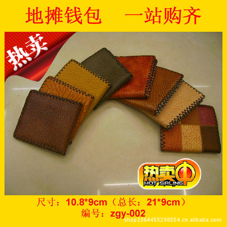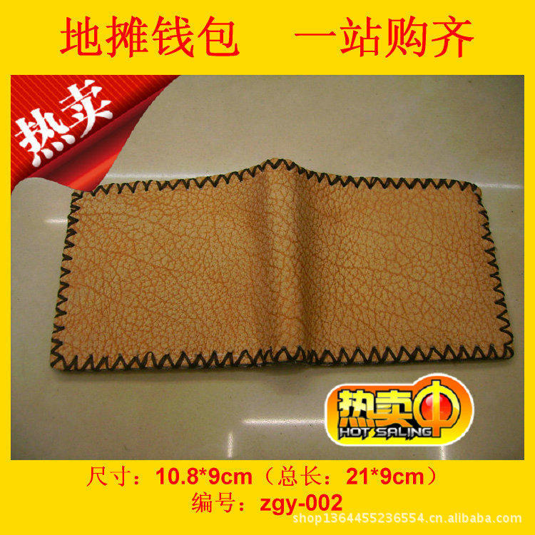 本公司所有产品的价格为批发价,不做零售,请知悉! 【品名】: 男式两折钱包 【编号】: zgy-002 【材料】: PU皮+牛皮+布料 【颜色】:多款多色 【包装】: 1个1袋装 【起批】: 全店50个起批 |