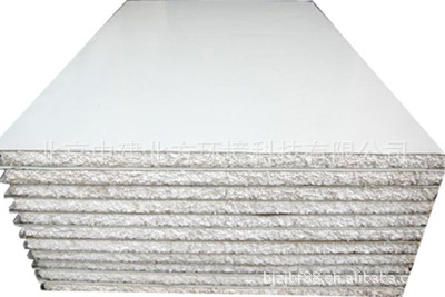 B、岩棉保温隔热彩钢夹芯板 其芯材是以玄武及其它天然矿石等为主要原料,经高温熔融成纤维,加入适量粘结剂,固化加工而制成的。该产品适用于工业设备、建筑、船舶的绝热、隔音等,同时适用于净化房、防爆防火车间吊顶、隔断等。