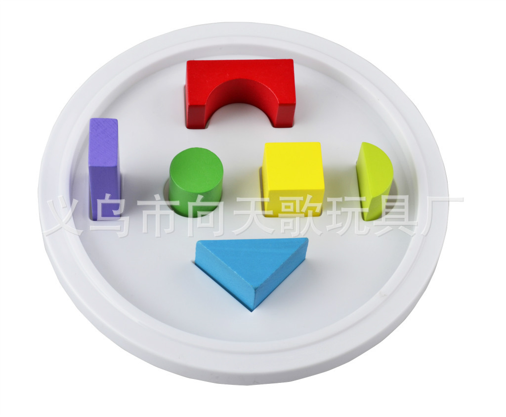 6.圆桶盖子是一个益智图形玩具,可以将积木按照上面图形一块块放在桶里,装好积木的同时,宝宝也认识各种图形图案
