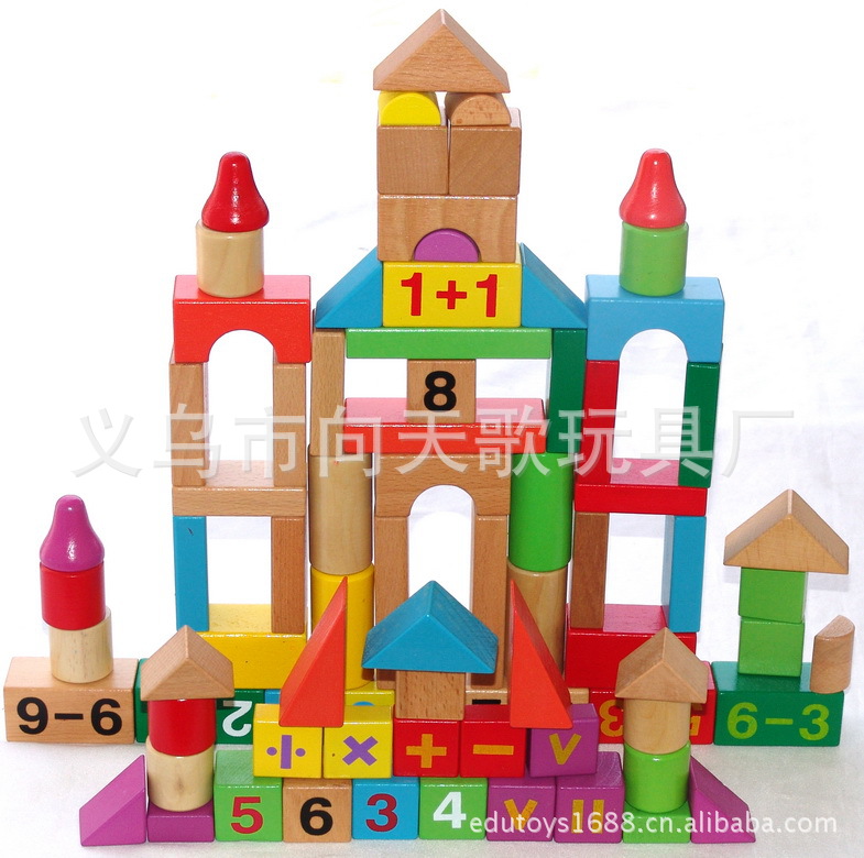 80粒百变桶装数学积木 启蒙积木 益智积木 木制积木
