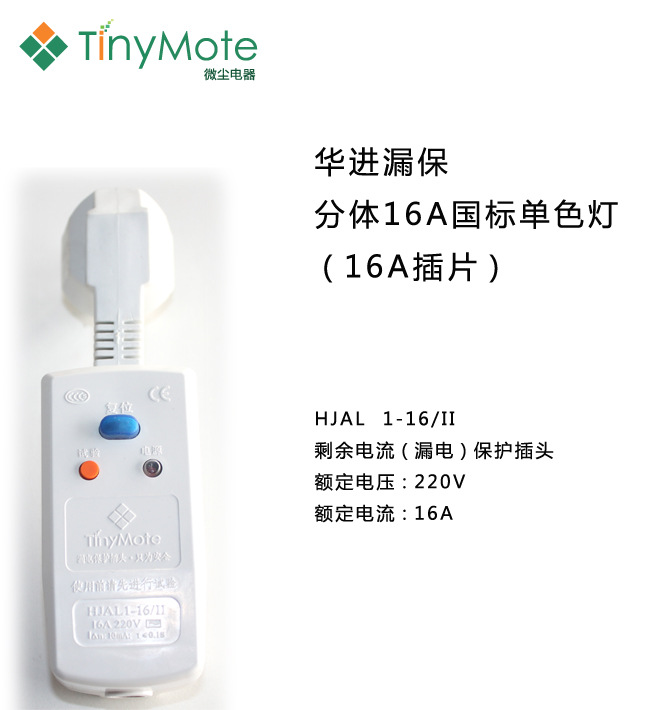 HJAL 1-16/II系列剩余电流(漏电)保护插头适用于交流额定电压为187V~242V,额定电流为16A的单相电路中,采用的是16a的插片。其主要保护功能是对有致命危险的人身触电在0.1秒内迅速自动切断电源,既保护人身安全,又保护电器设备免受损坏。在其他保护措施失效时,也可作为直接接触的补充保护。本产品已通过国家强制性认证并获得CCC认证证书。
