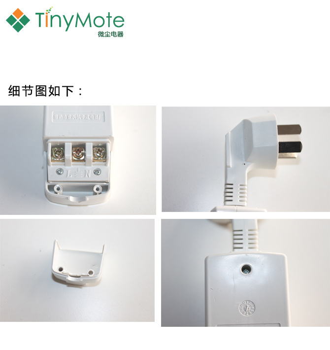1、 打开插头后尾盖,剥去用电器电源线输出端的绝缘层,再插入插头接线端子,用起子旋紧紧固螺钉,并注意火、零、地线的正确连接。