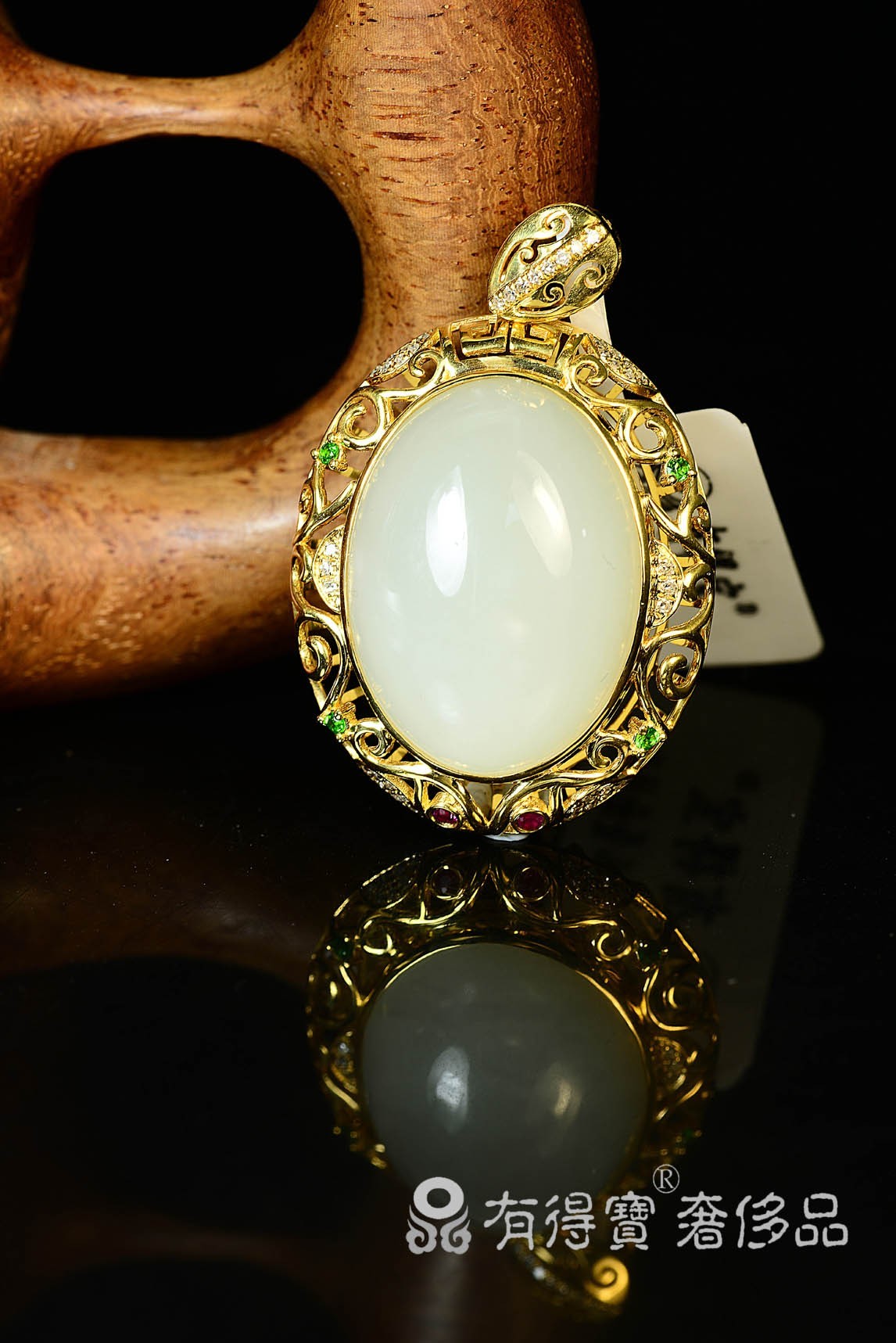 精选上等昆仑白玉,质地细腻,圆润。背后镶金镂空,设计精湛,前卫时尚图形简洁,线条流畅。采用错位抛光工艺,增加立体视觉冲击,是当代成功女性追求至高境界。造型简洁大方,乃是白玉设计中最见精华的椭圆蛋面设计,饱满圆润的蛋面的简单线条使得白玉本身的质地一览无余。细细观之,其结构幼细紧密,晶莹无瑕。蛋面白玉周围均有碎钻镶嵌,使得这件吊坠看起来更为精致耀目。整套作品浑然一体,华贵无比。
