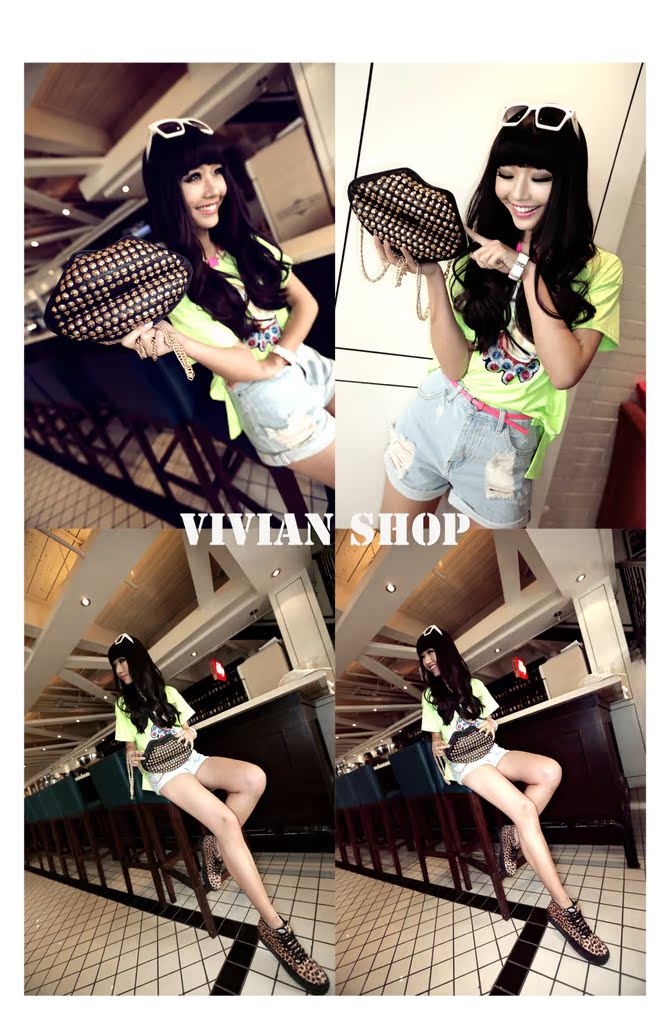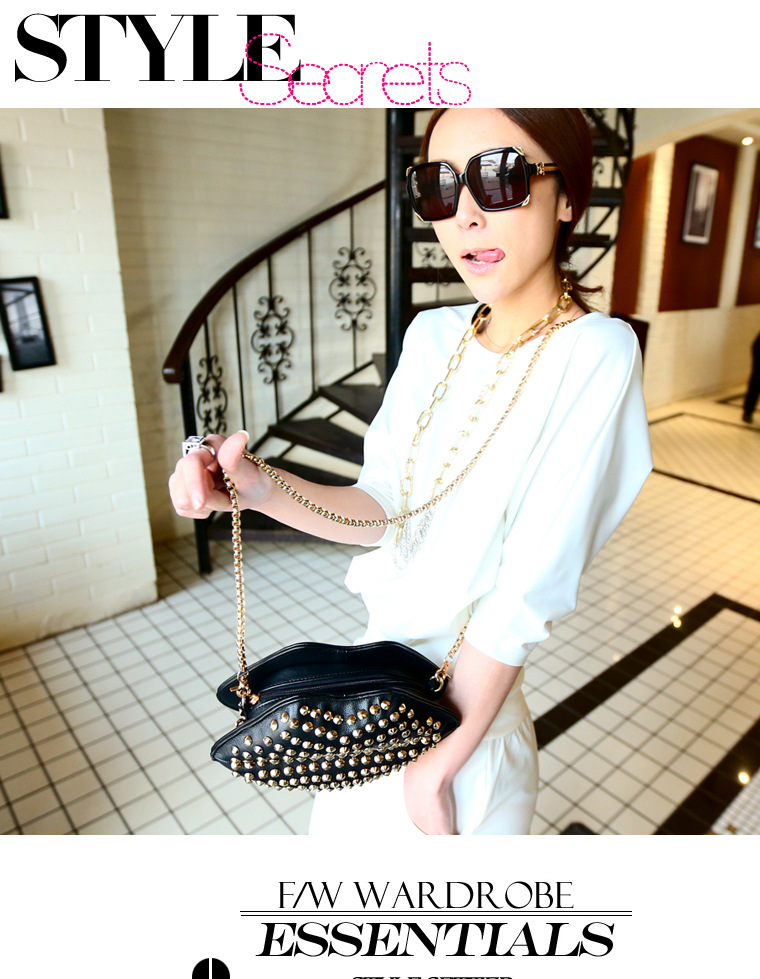 13新款潮女包韩版铆钉包香吻嘴唇包