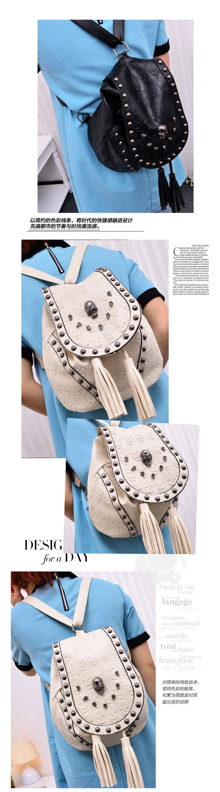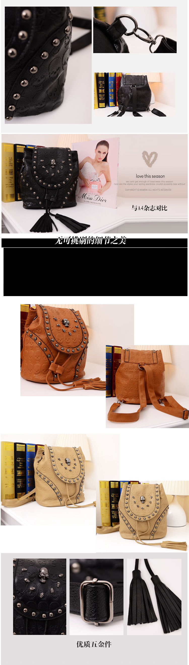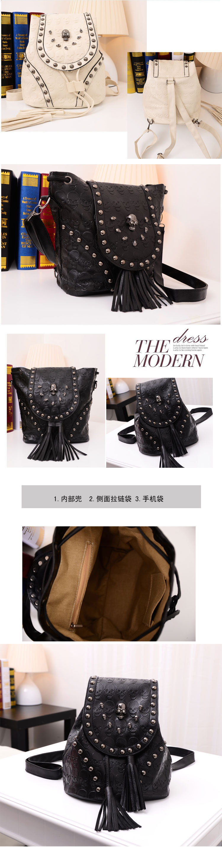 新款多用骷髅系列压花纹单肩斜跨双背搭配流苏小包朋克风女潮流包