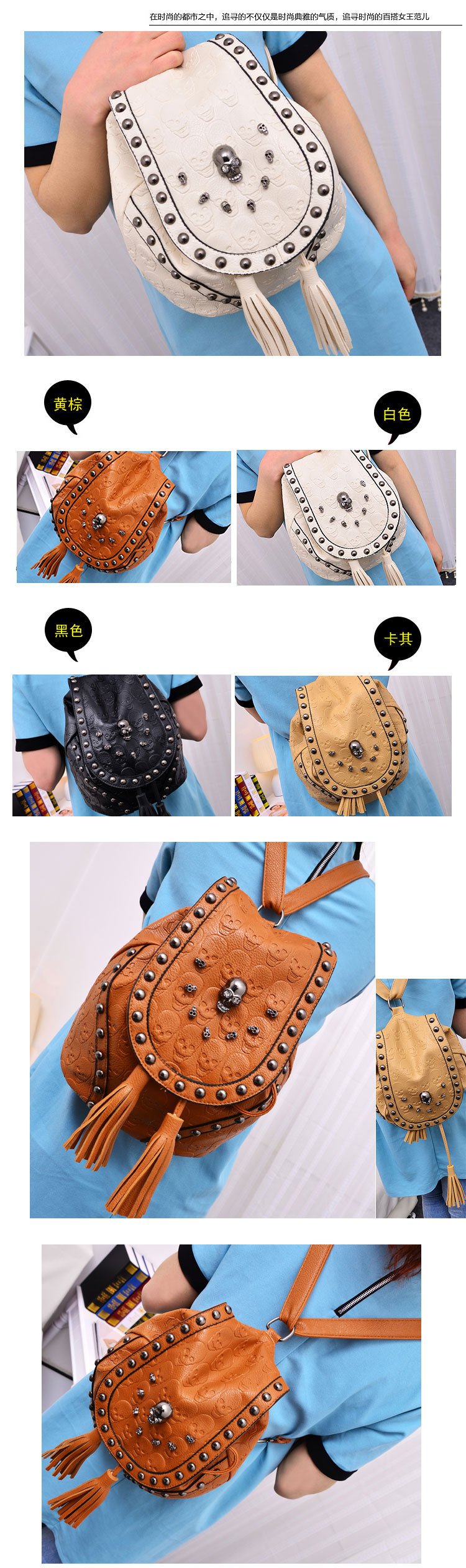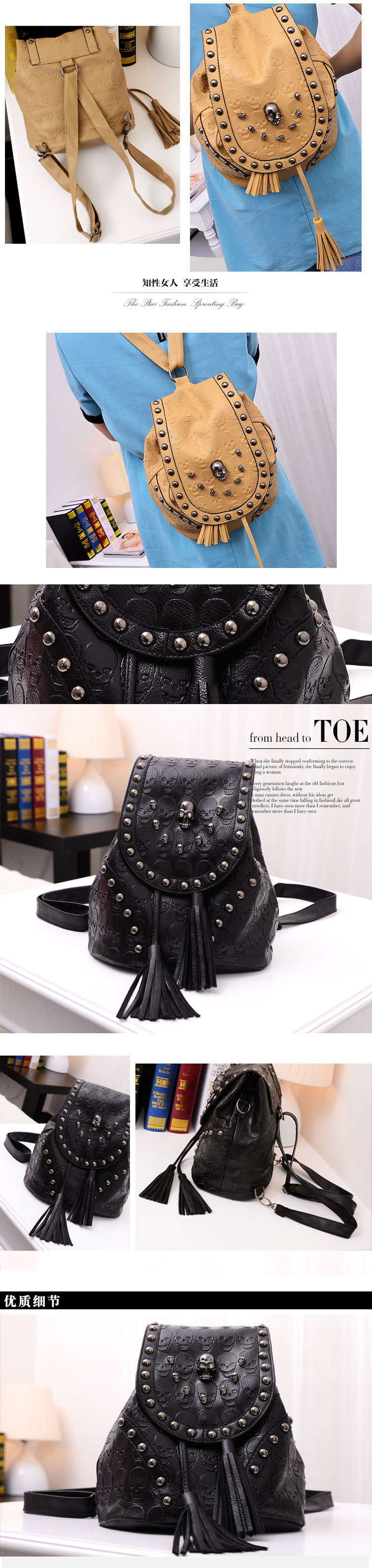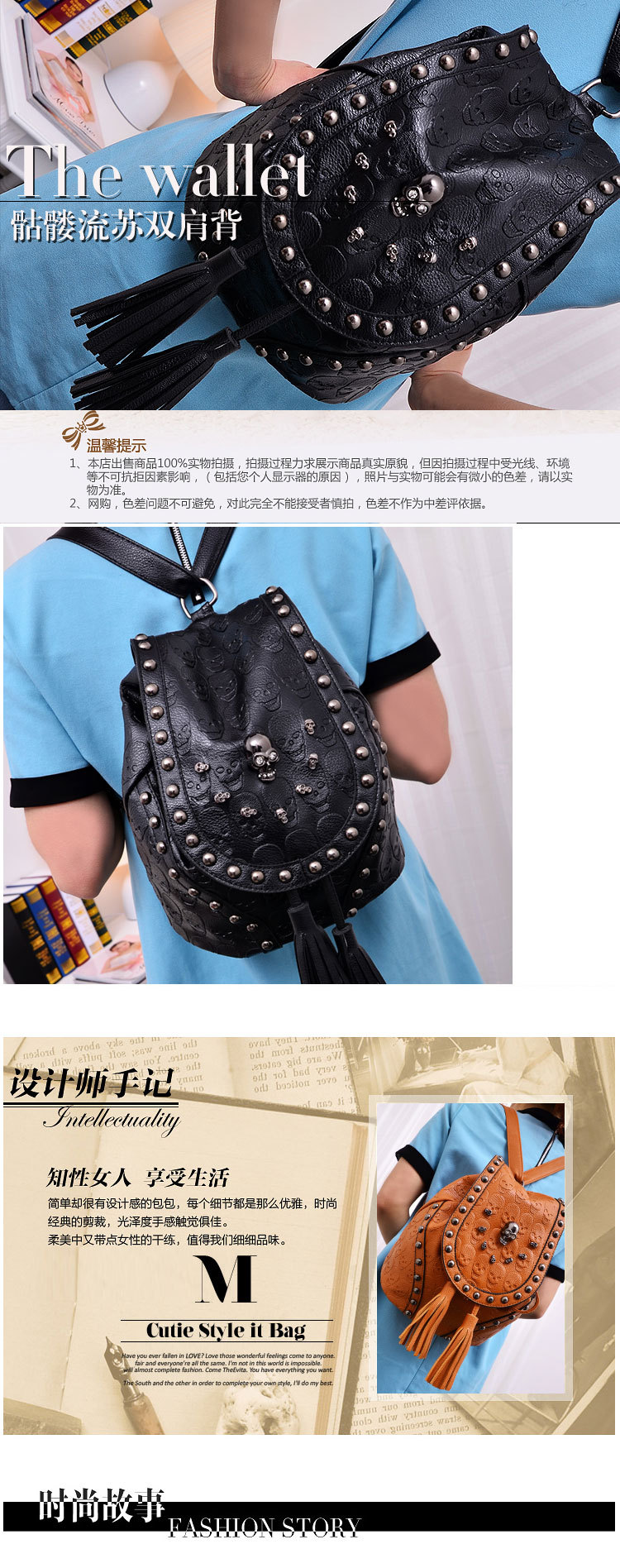新款多用骷髅系列压花纹单肩斜跨双背搭配流苏小包朋克风女潮流包