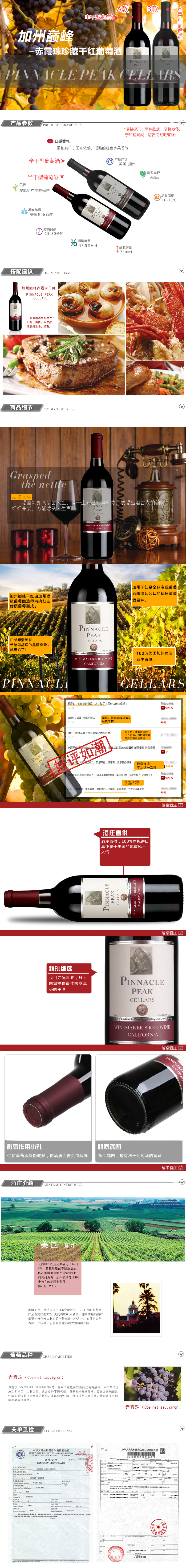 美国原瓶进口红酒 加州巅峰赤霞珠干红葡萄酒