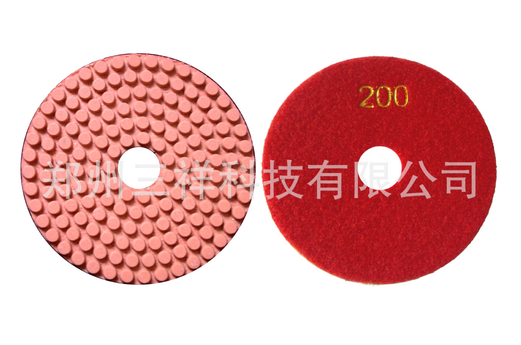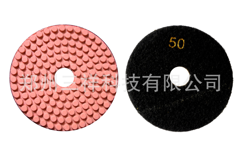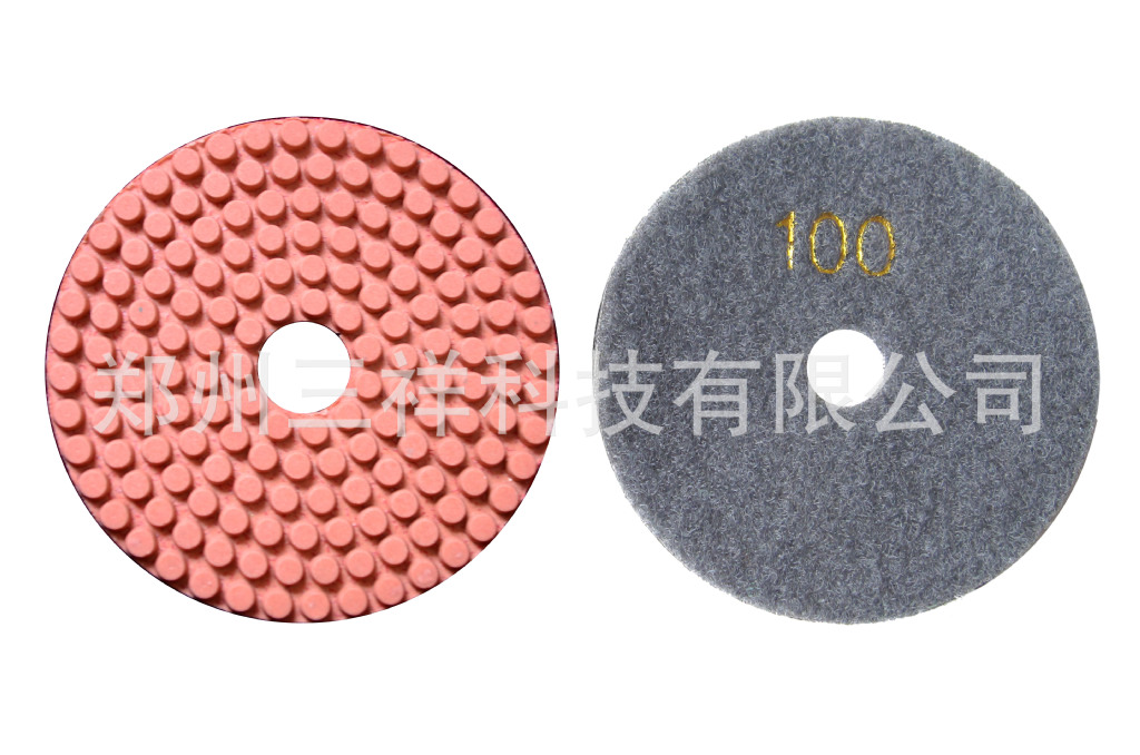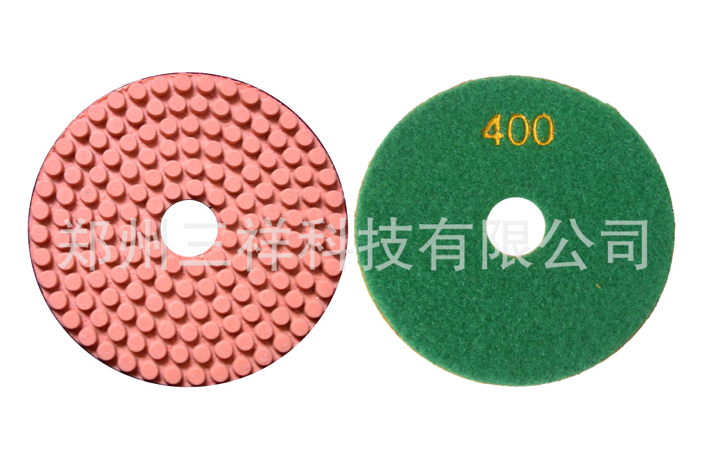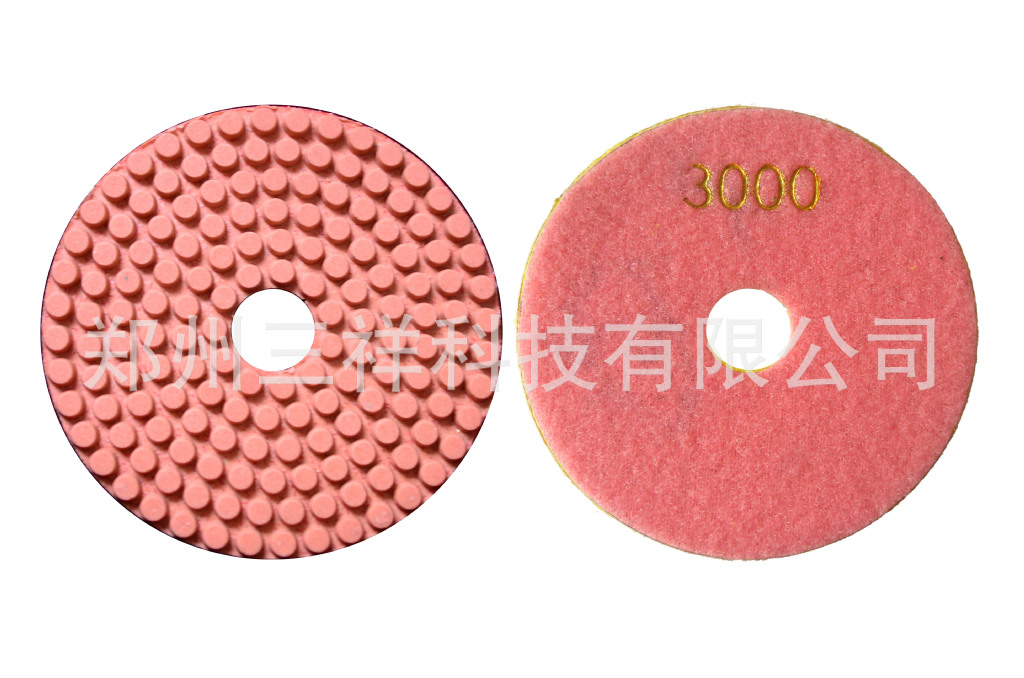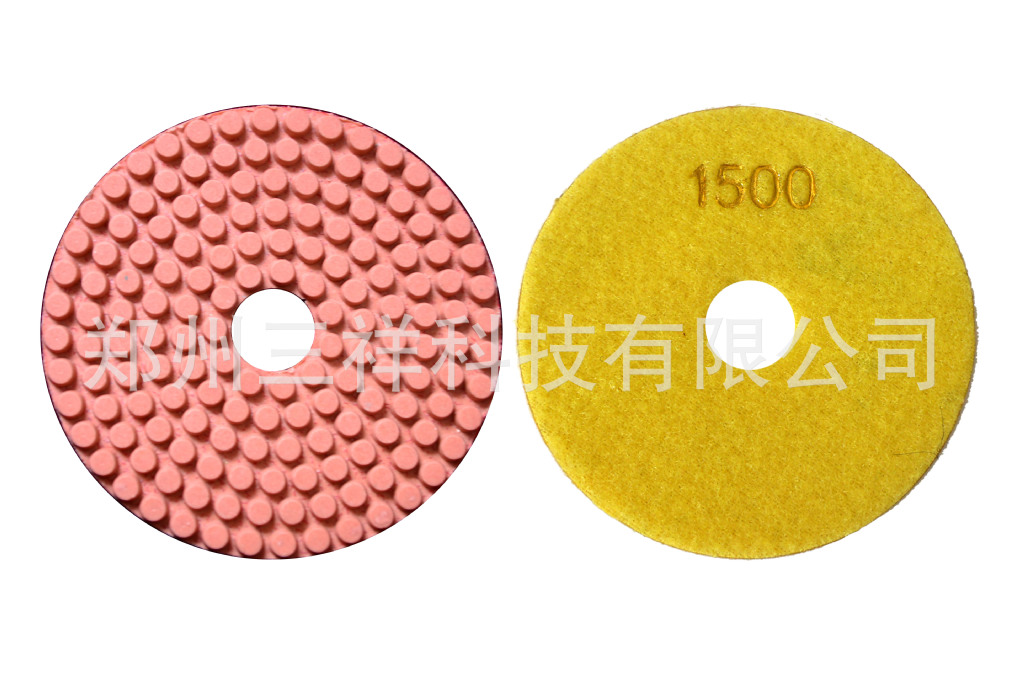 树脂水磨片,圆柱形磨粒均匀排列,有利于排水、排屑。郑州三祥科技有限公司0371-67985971是专业生产软磨片,水磨片,干磨片,翻新片,金刚石锯片,金刚石磨盘,金刚石磨块等金刚石工具的厂家,是一家专门从事于金刚石制品的研发,生产与销售的高新技术企业。