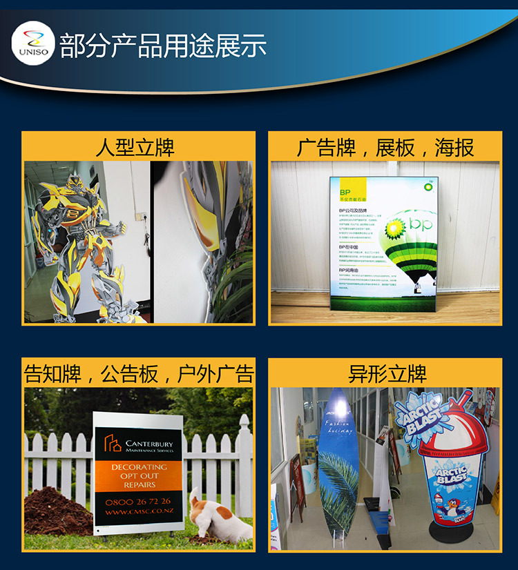可用于制作大型广告牌、标语及户外、户内丝网印刷标牌和宽幅数码喷绘
