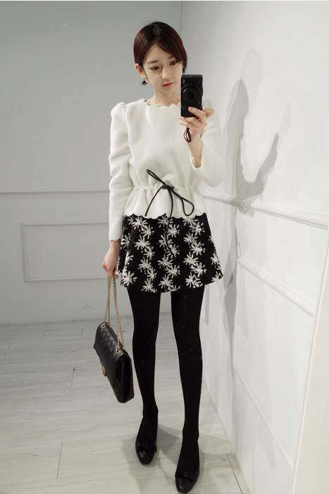 工厂直销修身气质学院风荷叶边绣花长袖两件套打底连衣裙