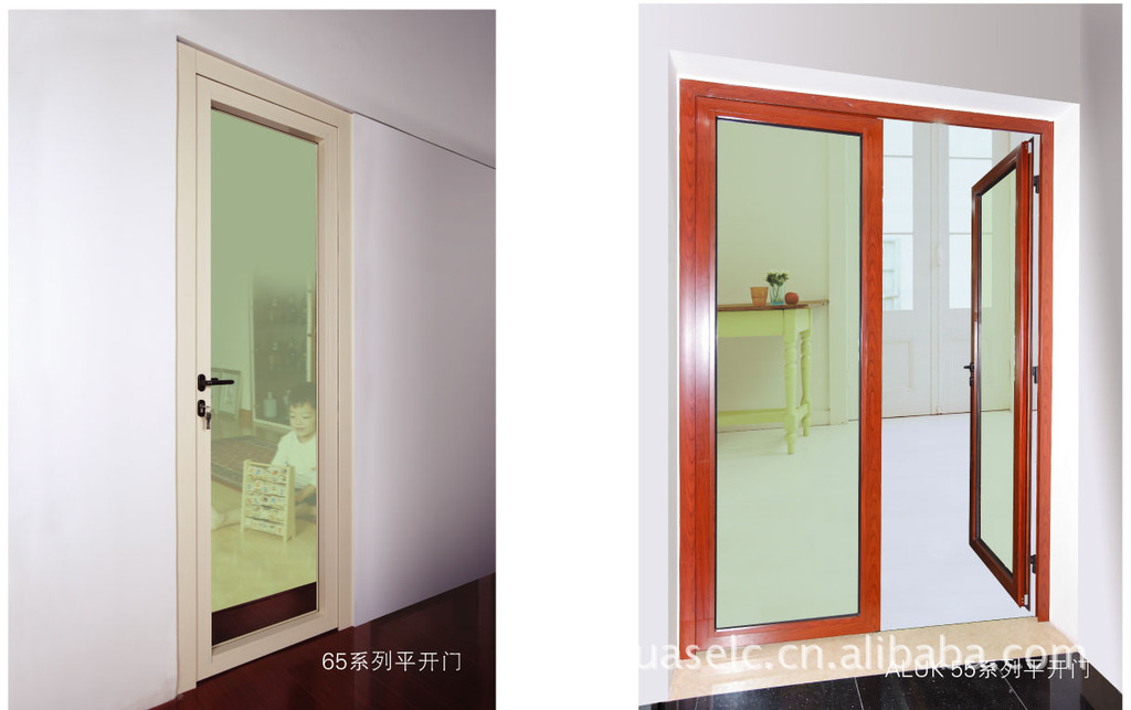 优点:1、 防水、隔音、隔热:采用高性能断桥隔热铝材、中空玻璃,结合ALUK的配件在隔热、隔音、防水性能方面更加理想;2、 特别美观:门的外表面有多种配色方案可选,配合家装使用,在保证高品质的同时更加具有美学性能;3、 承重力大:配件经久耐磨,在门扇设计上有单扇和双扇之分。