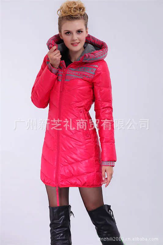 长款立领新款女式常熟羽绒服批发羽绒衣一件代发正品英文纹理爆款
