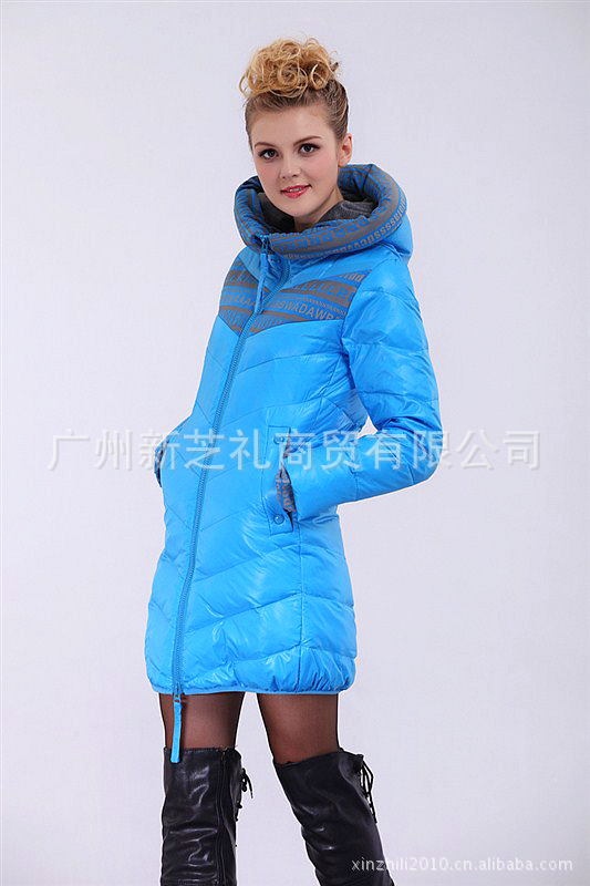 2012女款 超大毛领 收腰型中长款 女式羽绒服批发 女款韩版