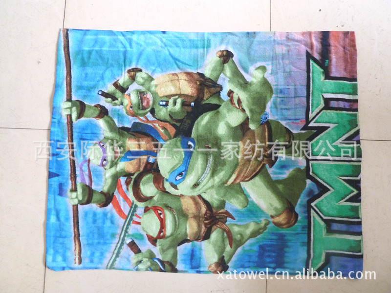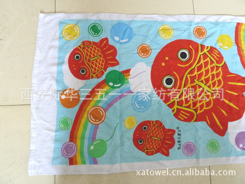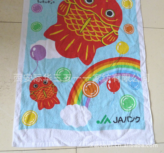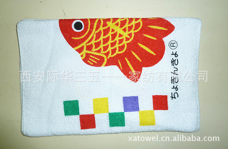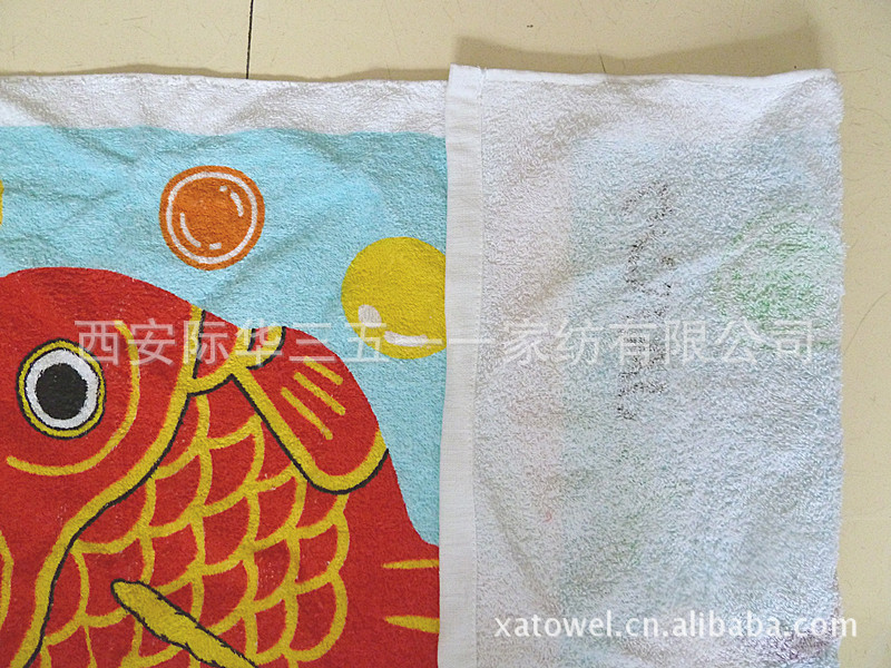涂料毛圈印花毛巾,重量较轻,成本较低,手感比活性印花略硬,有一定价格优势。