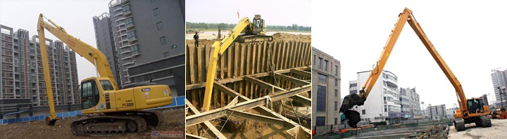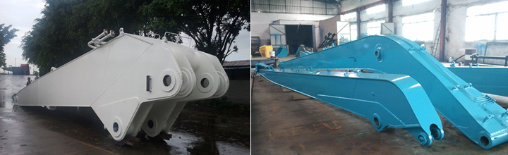 该产品专为为高层建筑的拆卸、深沟挖掘而定制的加长型二节大小臂。臂内安装有内部缓冲板以承受张力负载,可延长使用寿命,次类型产品我厂包含臂上装配的液压钢管、润滑油铜管、液压油缸、连杆总成、挖斗、销轴、高压软管。
