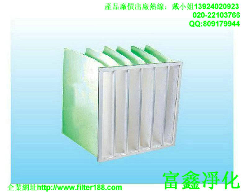 3) 各组袋均有定位风道,配以薄气动分隔袋结构和顺应气流的标准V字型结构,最大程度的稳定气流,保证过滤介质的有效利用,确保最佳过滤效果。