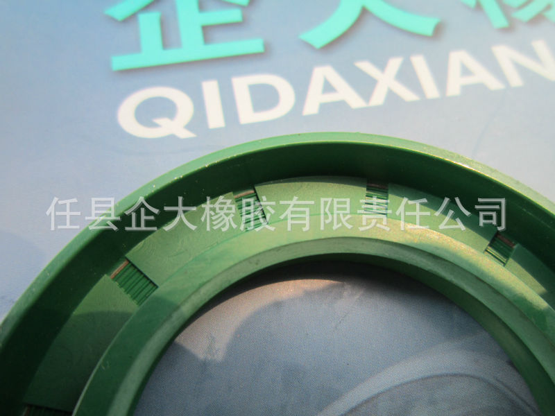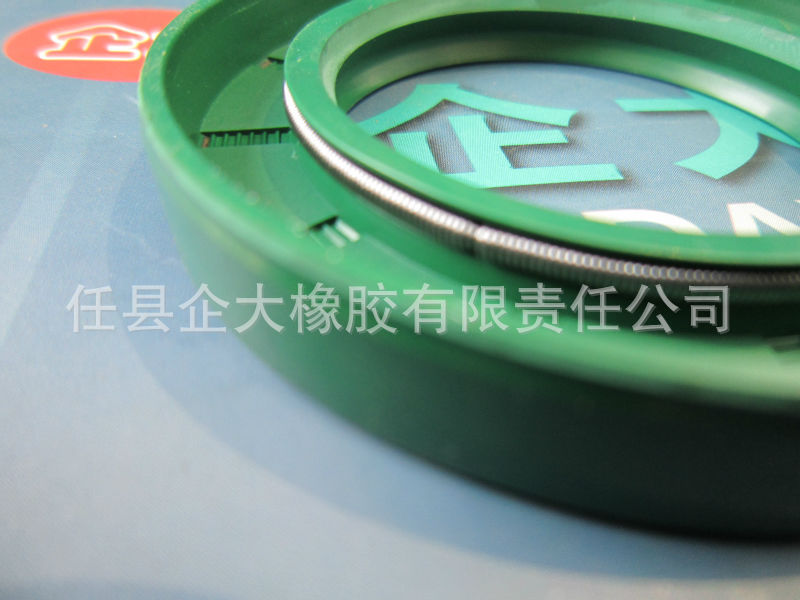 油封外部为圆筒形用来保证对腔体的静态密封-采用内包金属骨架的橡胶外缘;采用外露金属骨架的外缘,大多需要抛光和镀敷防腐涂层。装有弹簧的密封唇保证轴的动态和静态密封的密封可靠性。经过长期开发研究的结果,油封的密封唇结构提高到极佳的性能,进而提高在更宽的负荷范围内的密封可靠性添加防尘唇,或者在特殊情况下采用的多个防尘唇,可防止外界污染物和灰尘侵入。