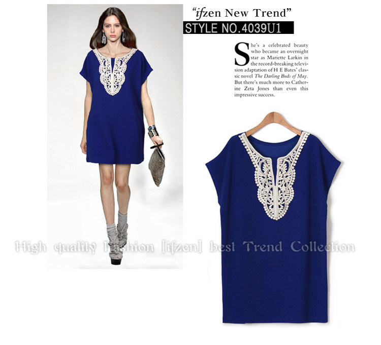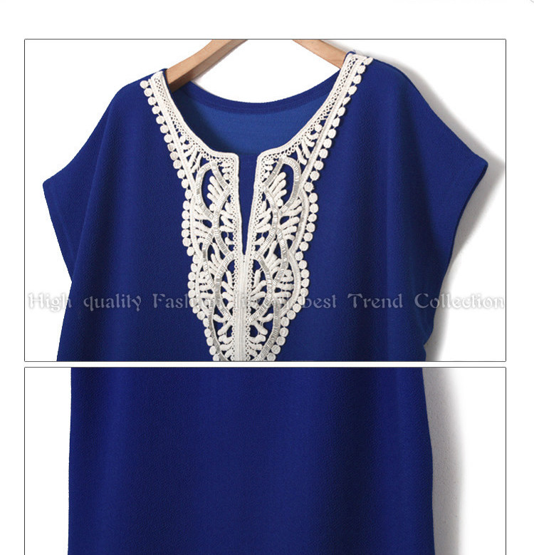 2014欧美大码女装加大加肥领口绣花短袖宽松休闲连衣裙潮551