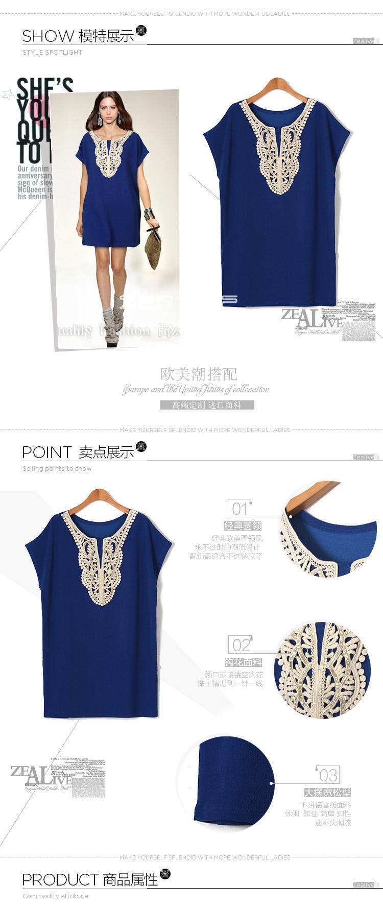 加大MM时尚韩版钩花宽松拼接雪纺百褶边边连衣裙454 女装代理加盟