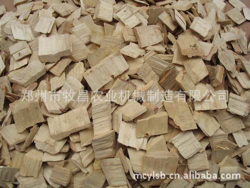 ①鼓式削片机。主要用于切削直径或厚度在 120毫米以下的枝桠、小径木、板皮、板条等,切削后的木片,用作纤维板、纸浆的原料。其切削机构是一个旋转的鼓轮,上面安装若干把飞刀,飞刀旋转时将木材加工成工艺木片。鼓轮外缘上有多个方形通孔,可使木片顺利排出;进料机构由进料接口、上下进料辊及进料调隙机构组成,从进料接口进入的木料被上下进料辊压住,并以一定的速度向切削机构进给,控制切削木片的尺寸;在加工厚木料时,由进料调隙机构进行调节。木片经筛选后,较大的须再次进入刀片与档板间粉碎。这种削片机切削的木片质量较低。