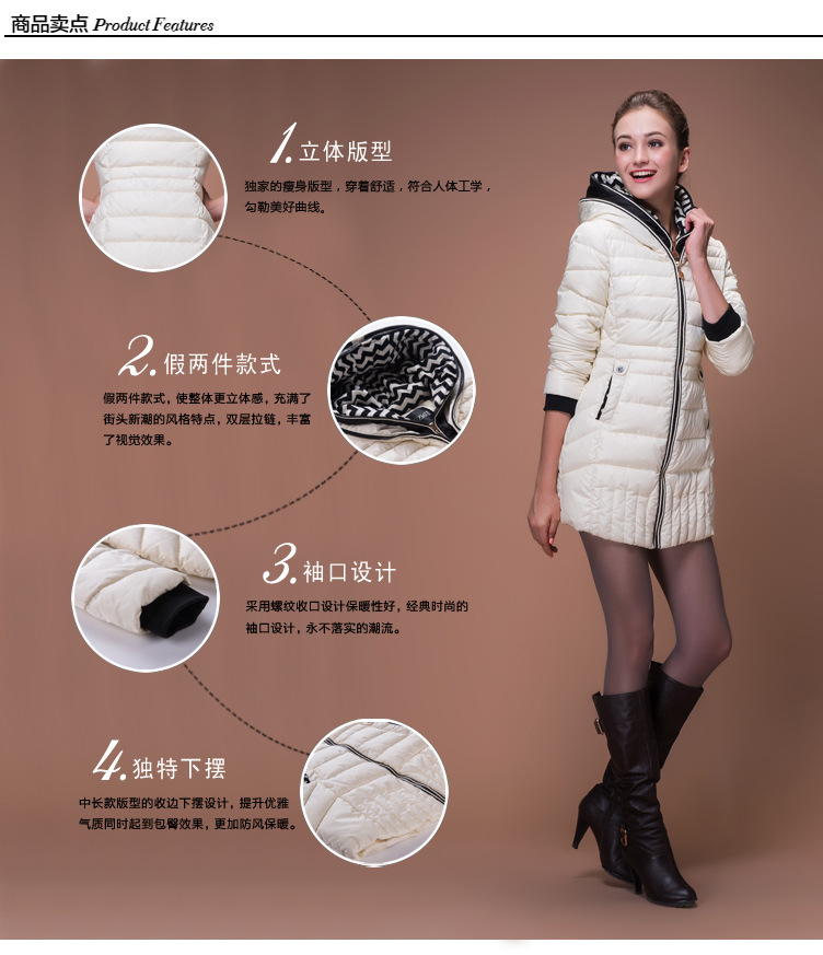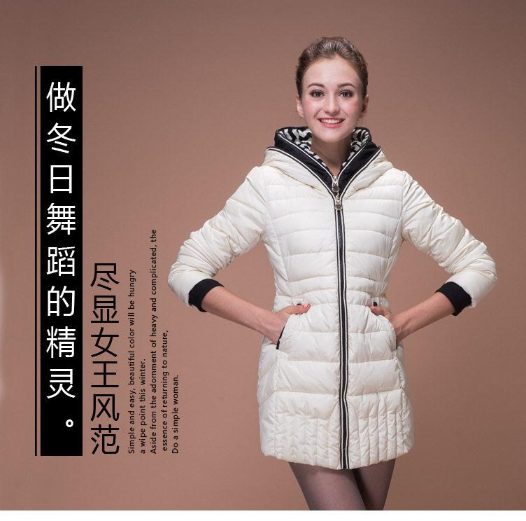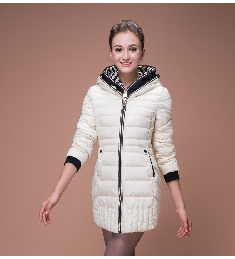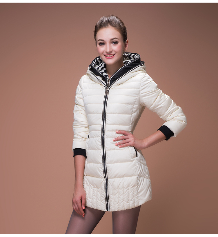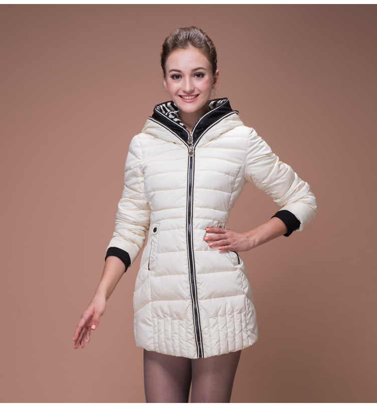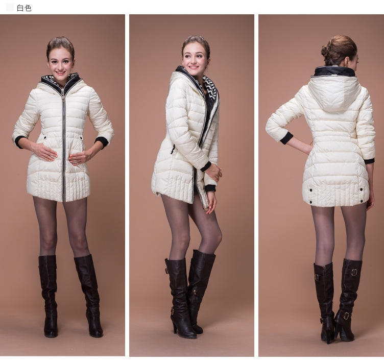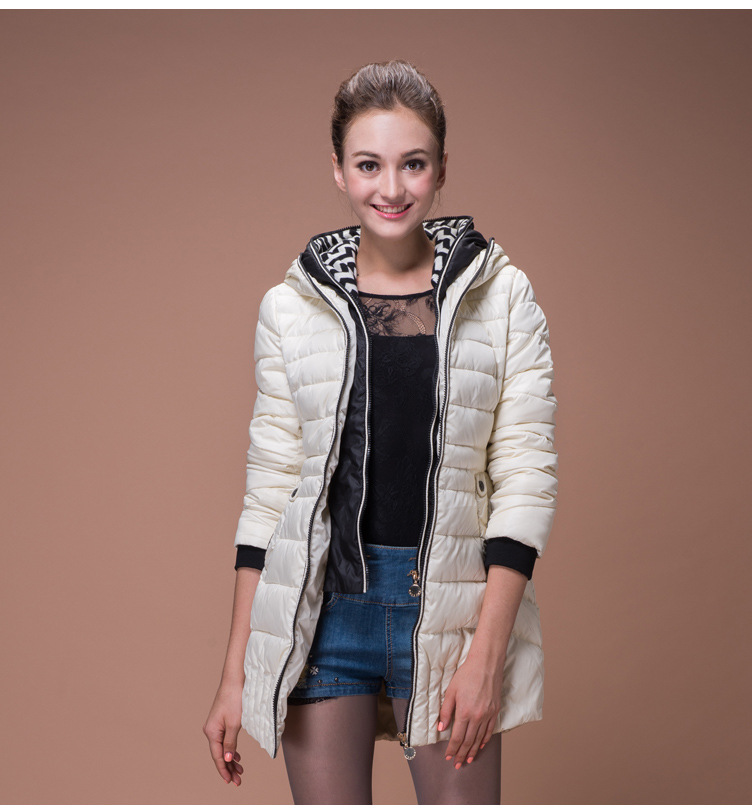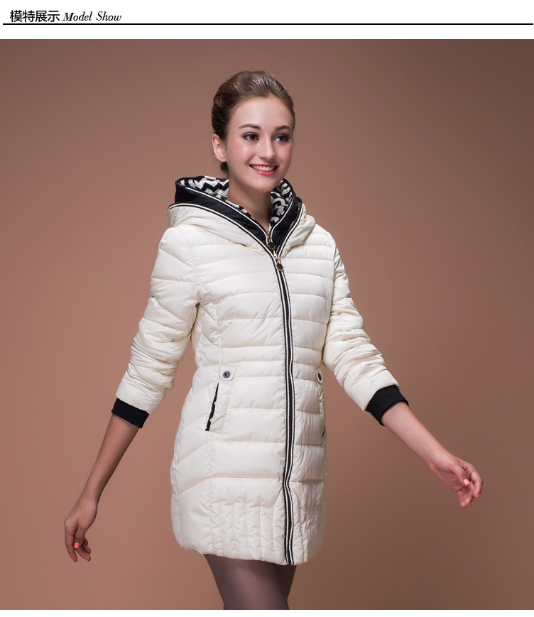 海嘉仕 冬季女装棉衣 中长款棉服 韩版修身薄款连帽女式棉袄
