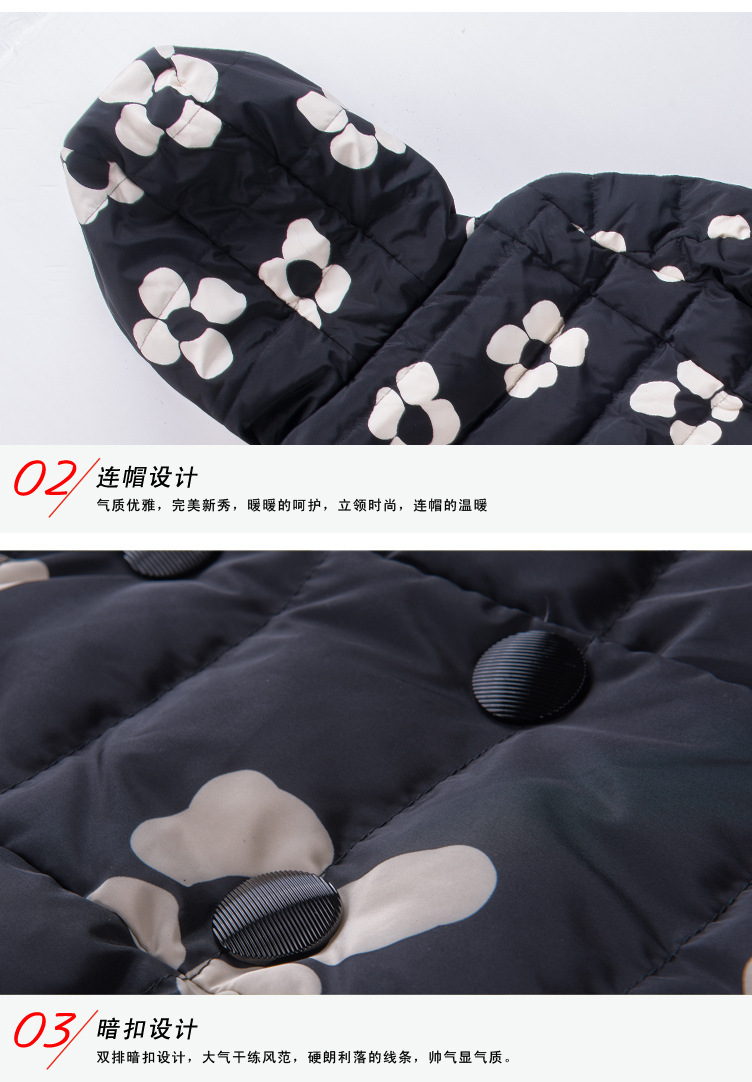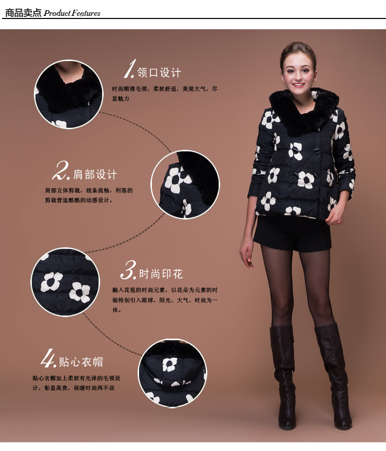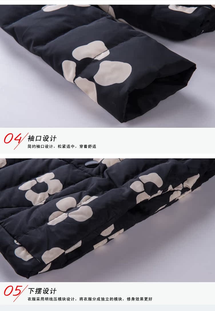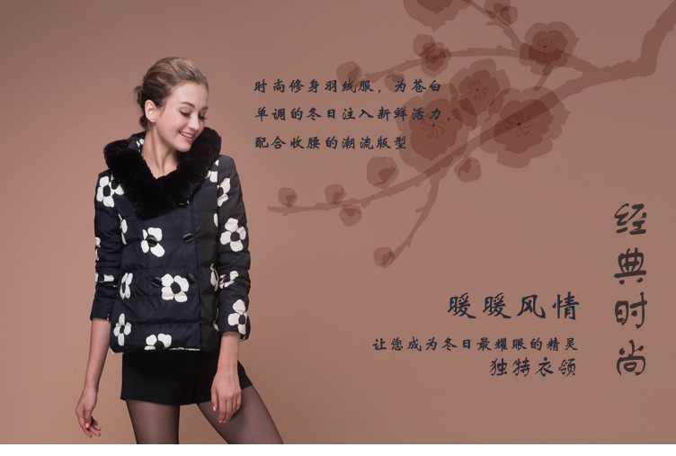 海嘉仕 韩版羽绒服女款 时尚印花短款羽绒服 立领连帽 白鸭绒