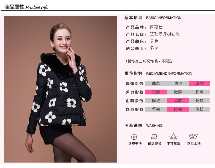 海嘉仕短款羽绒服女欧洲站修身连帽撞色2014新款羽绒服女款