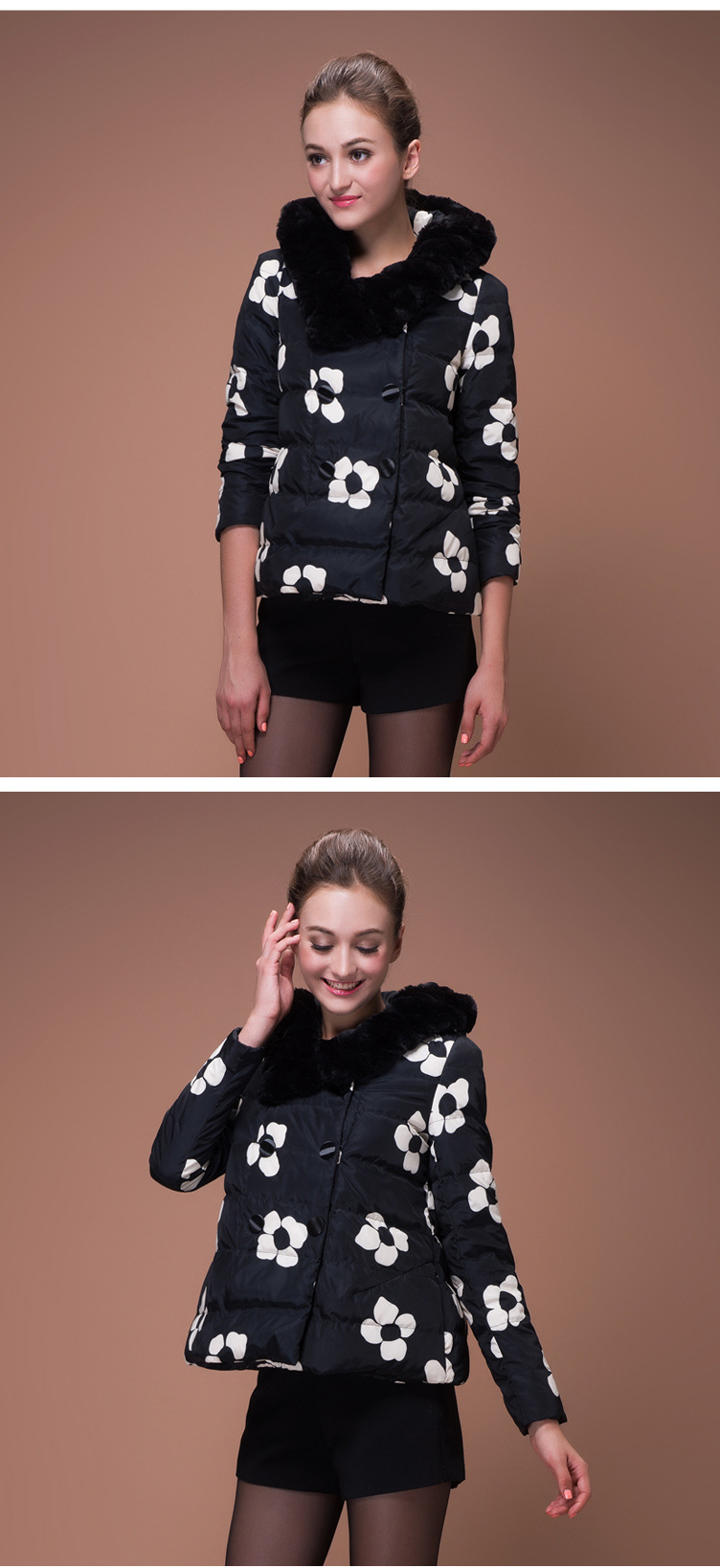 海嘉仕 仿兔毛领连帽轻薄短款羽绒服 欧洲站女式羽绒服批发