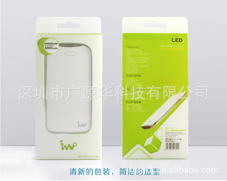 IWO艾沃5000毫安 厂家直销承接礼品定制企业LOGO时尚 移动电源 IWO-艾沃 时尚移动电源制造专家 P26 参数 |