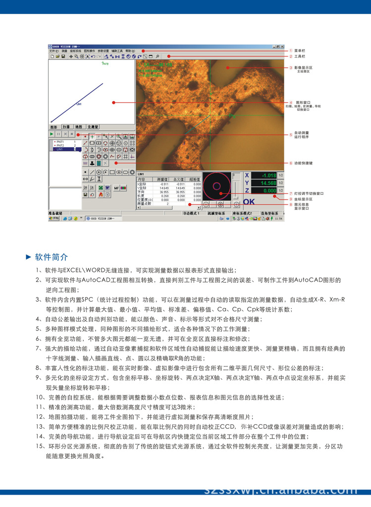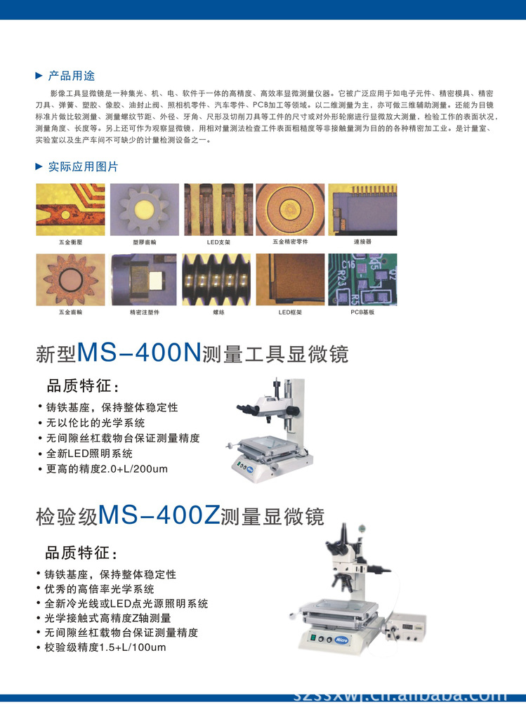 影像工具显微镜是一种集光、机、电、软件于一体的高精度、高效率显微测量仪器。它被广泛用于如电子元器件、精密模具、精密刀具、弹簧、橡胶、油封止阀、照相机零件、汽车零件、PCB加工等领域。