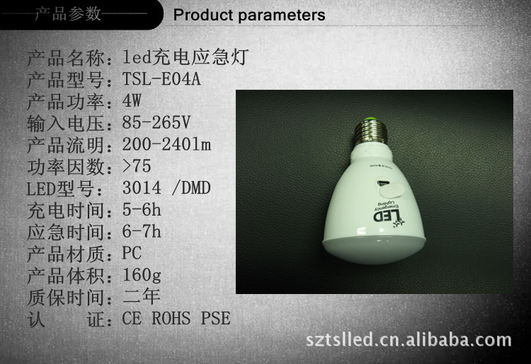 4WLED充电球泡 E27 LED充电应急灯 专利产品 原装正品有PS