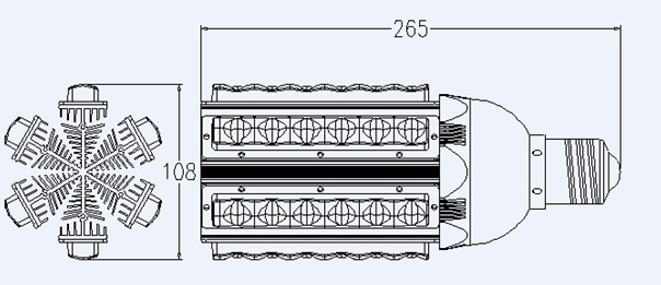 | 散热器与灯壳一体化设计,LED直接与外壳紧密相接,通过外壳散热翼与空气对流散热,充分保证了LED路灯50000小时的使用寿命。按照每天工作12个小时计算,其寿命也在10年以上,维护费用极低 |