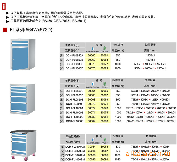 以下是深圳日邦仓储设备有限公司FL(564宽*572深,高度可选)系列重型工具柜的详细信息。