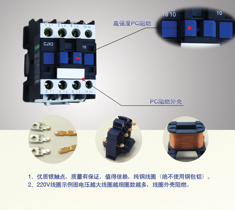 产品介绍:我们的交流接触器 (LC1)CJX2-4011采用银触点(非镀银) 质量可靠,别拿普通的铜触点来比价格!