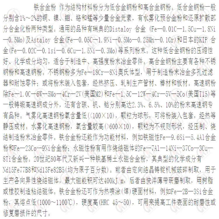 铁基自熔性合金是铁——碳合金中加入一定量的硼、硅元素制成的,通常应用在常温——500℃以下耐磨损、耐弱酸腐蚀介质的机械零部件上,仅管铁基自熔性合金,综合性能不如镍、钴基合金,然而原料来源广泛,价格便宜,这是其得以普及应用的较大优势。建议用户在使用前应在120℃保温两小时低温烘烤后使用。