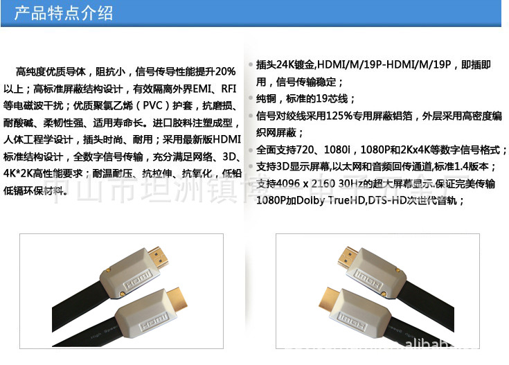 HDMI线 M/M 1.4版 锌合金装配型扁平线 1.8M 30AWG