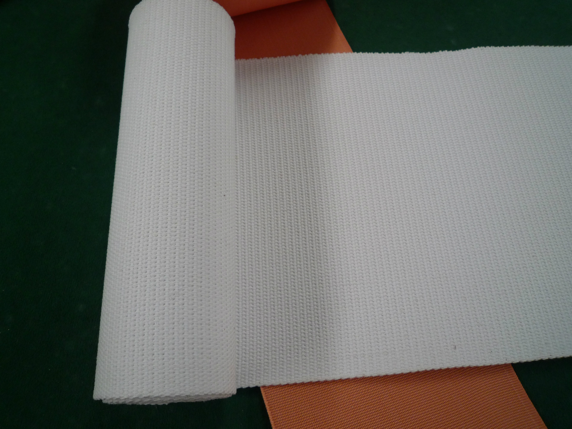 涤纶鱼丝织带 是由无梭机织成,材料采用涤纶纱和鱼丝线。