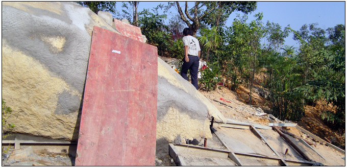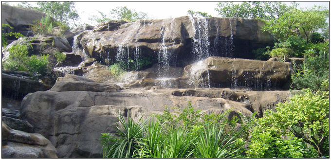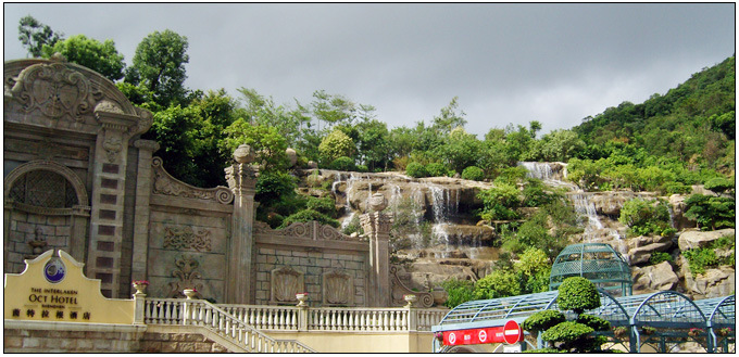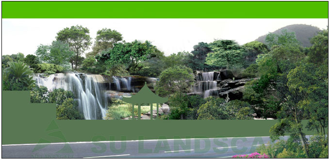 工程描述:在多功能剧场瀑布中,苏氏山水是刚直喧闹的,而在因特拉根酒店瀑布中,苏氏山水则是柔曲安静的。因特拉根酒店隐匿于湖光山色之间,苏氏山水捕捉到精致柔美的特质,将原本被破坏的山体修复,恢复成葱葱郁郁的原貌,并设计潺潺溪流从山坡流下。
