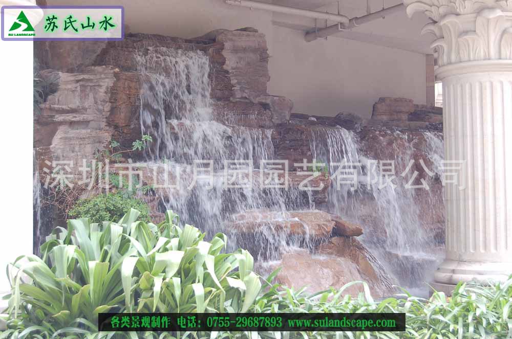 *室内环境: 机场、展会、大型集团。室内的假山喷泉、仿真植物、仿真树、综合环境艺术造景。