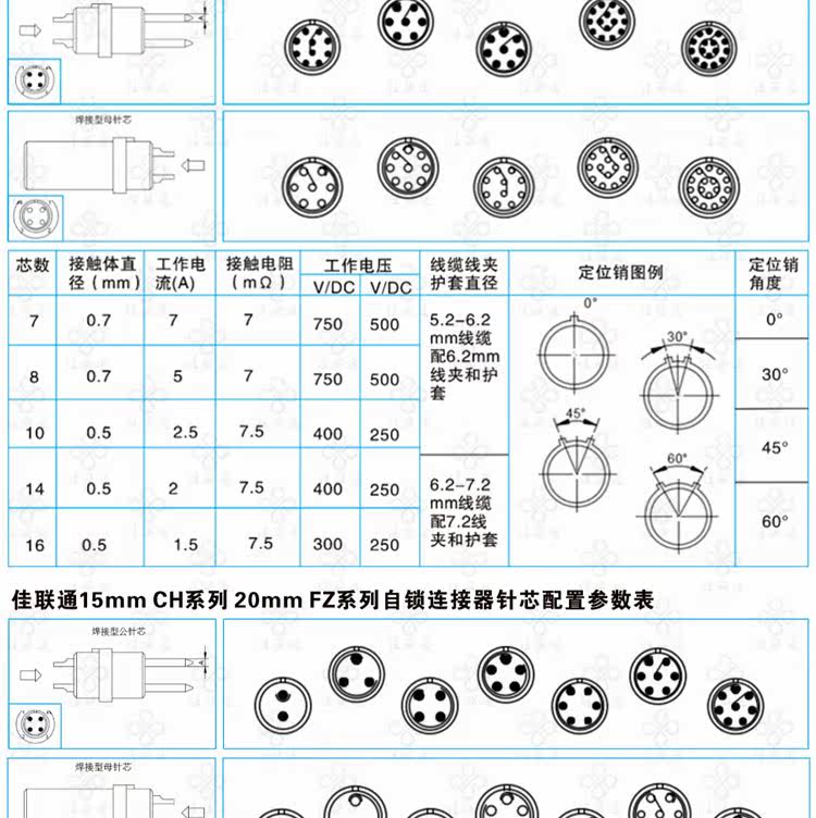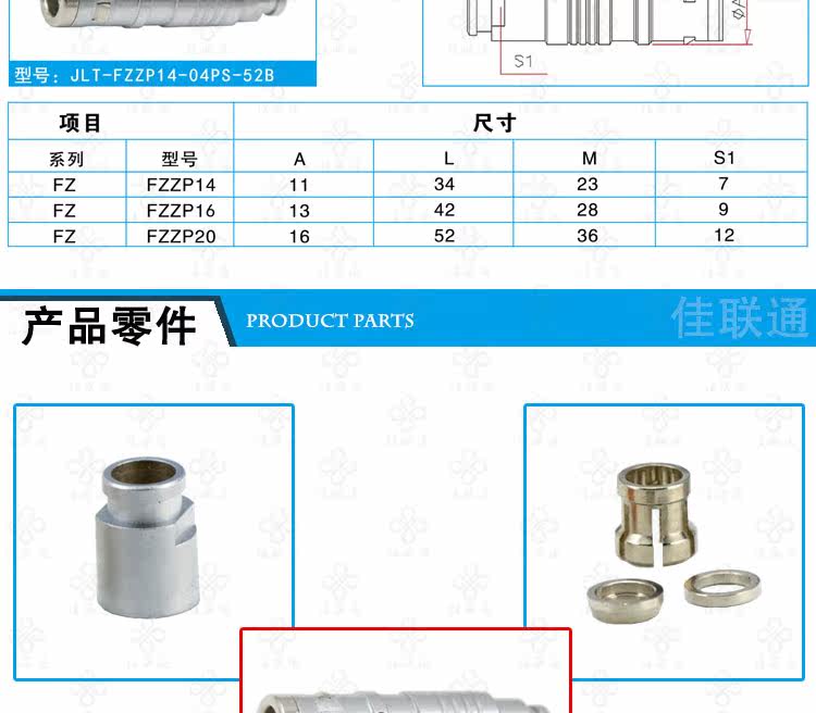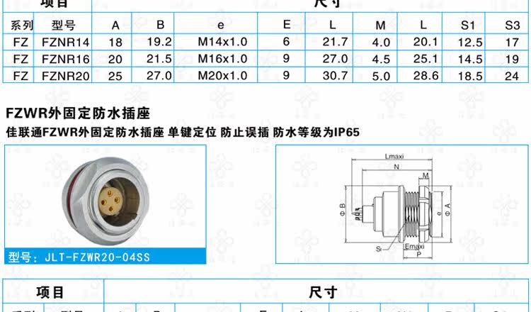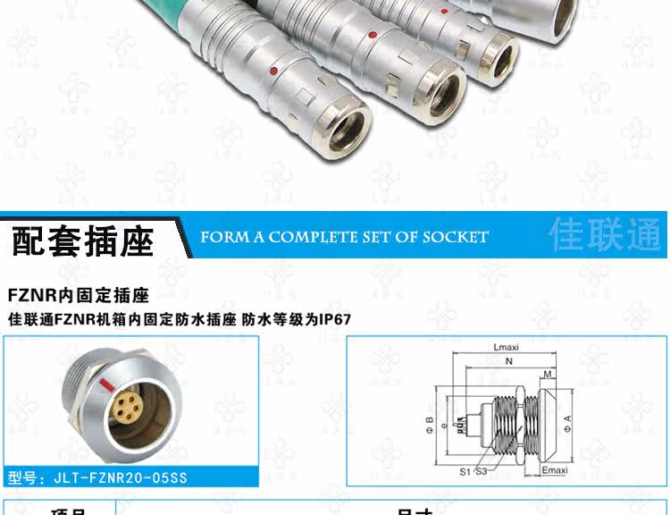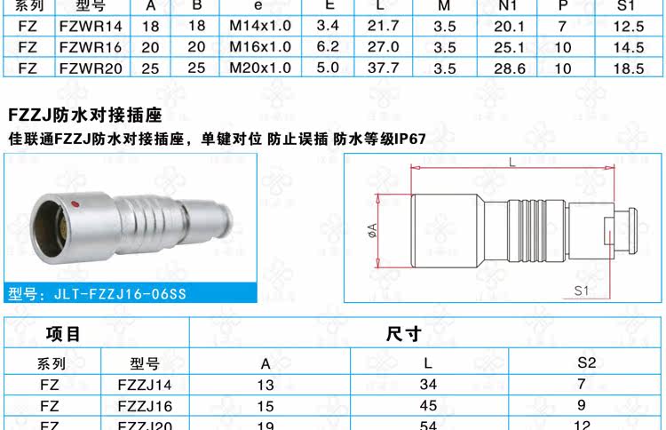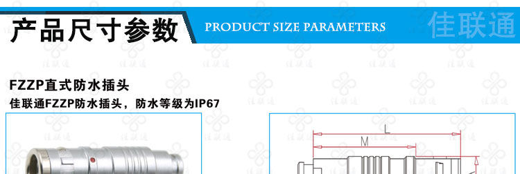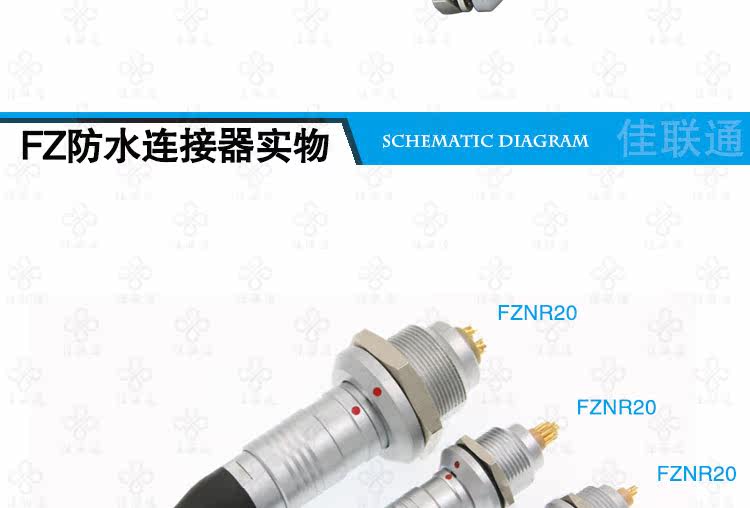 佳联通生产的FZZP14系列防水接插件广泛应用于通讯、电子、检测与测量、机械设备、医疗器械及仪器仪表等行业;特别适用于需频繁连接分离、需屏蔽的仪器仪表及设备上的电连接。