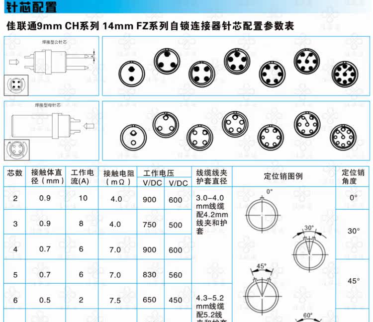 7) JLT-FZZP14防水航空插头芯数有2芯、3芯、4芯、5芯、6芯、7芯、9芯;高密度安装,节约空间。